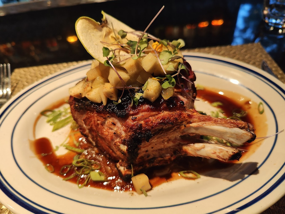 Berkshire Pork Chop – $38A succulent pork chop accented with a tangy apple chutney, perfectly balancing sweet and savory notes.
